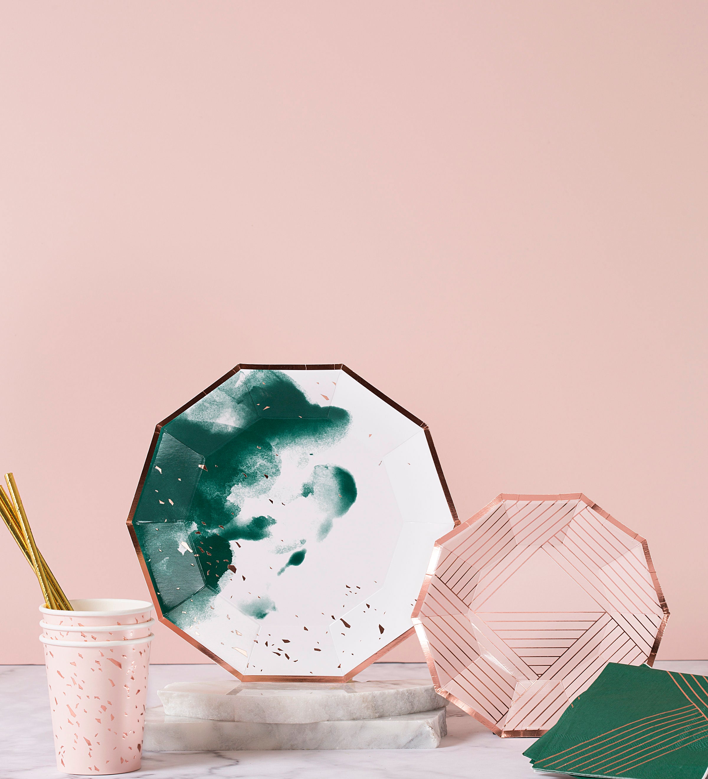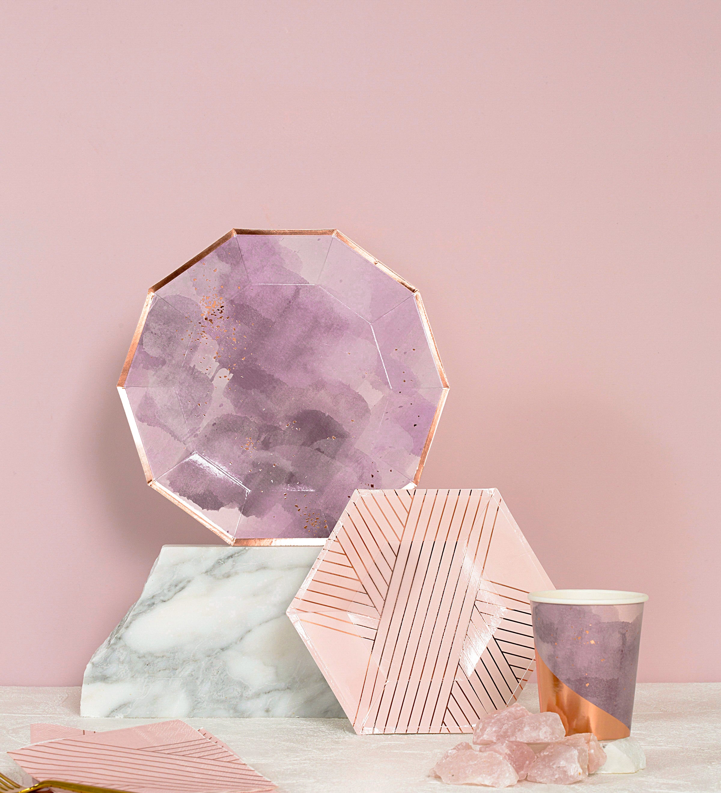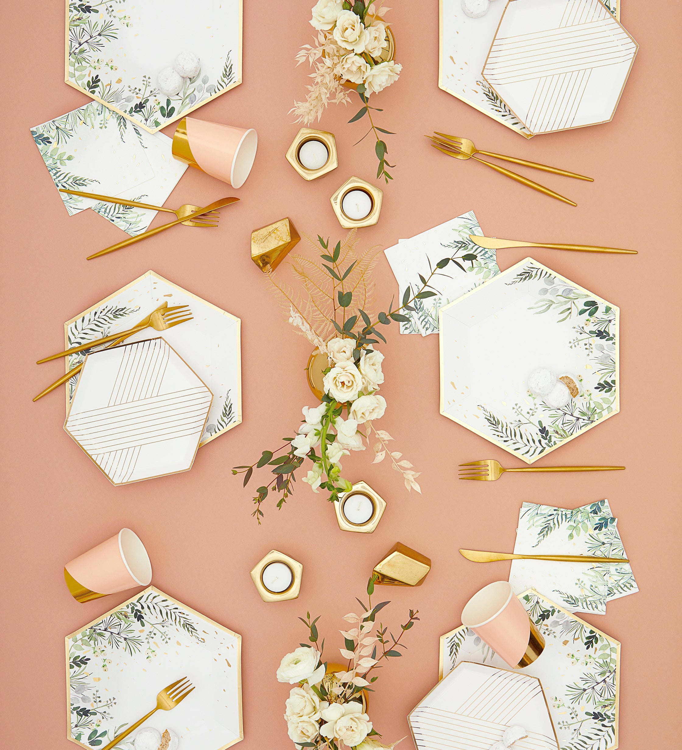Inspired by chinoiserie art, our Jardín Collection indulges your feminine side. Soft and dreamy with shiny rose gold motif, Jardín adds an elegant vibe to your bridal showers, birthday tea parties, and all special occasions alike.
