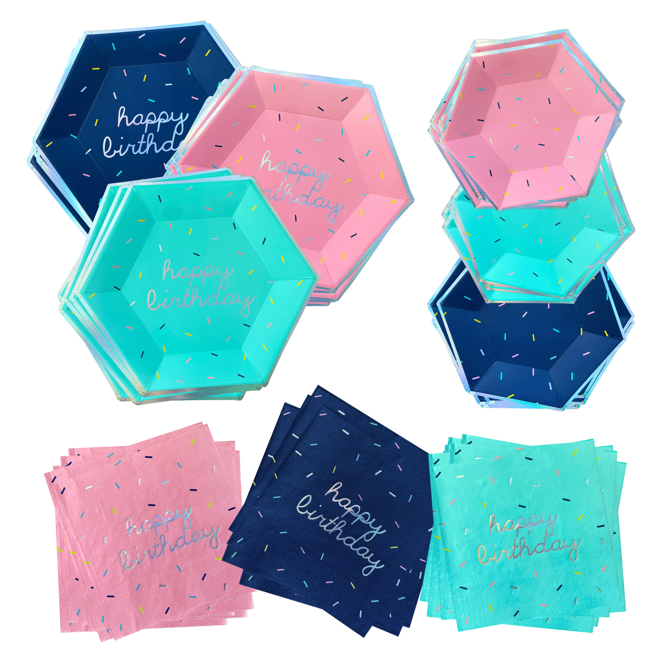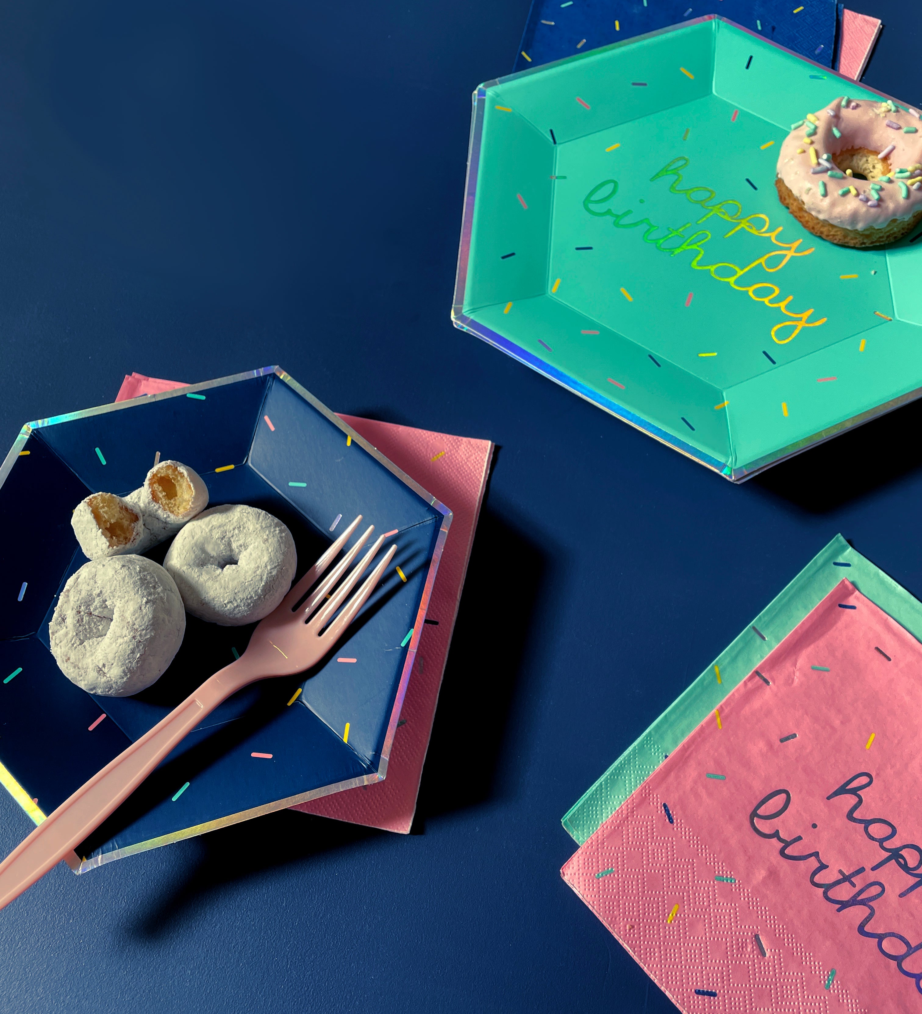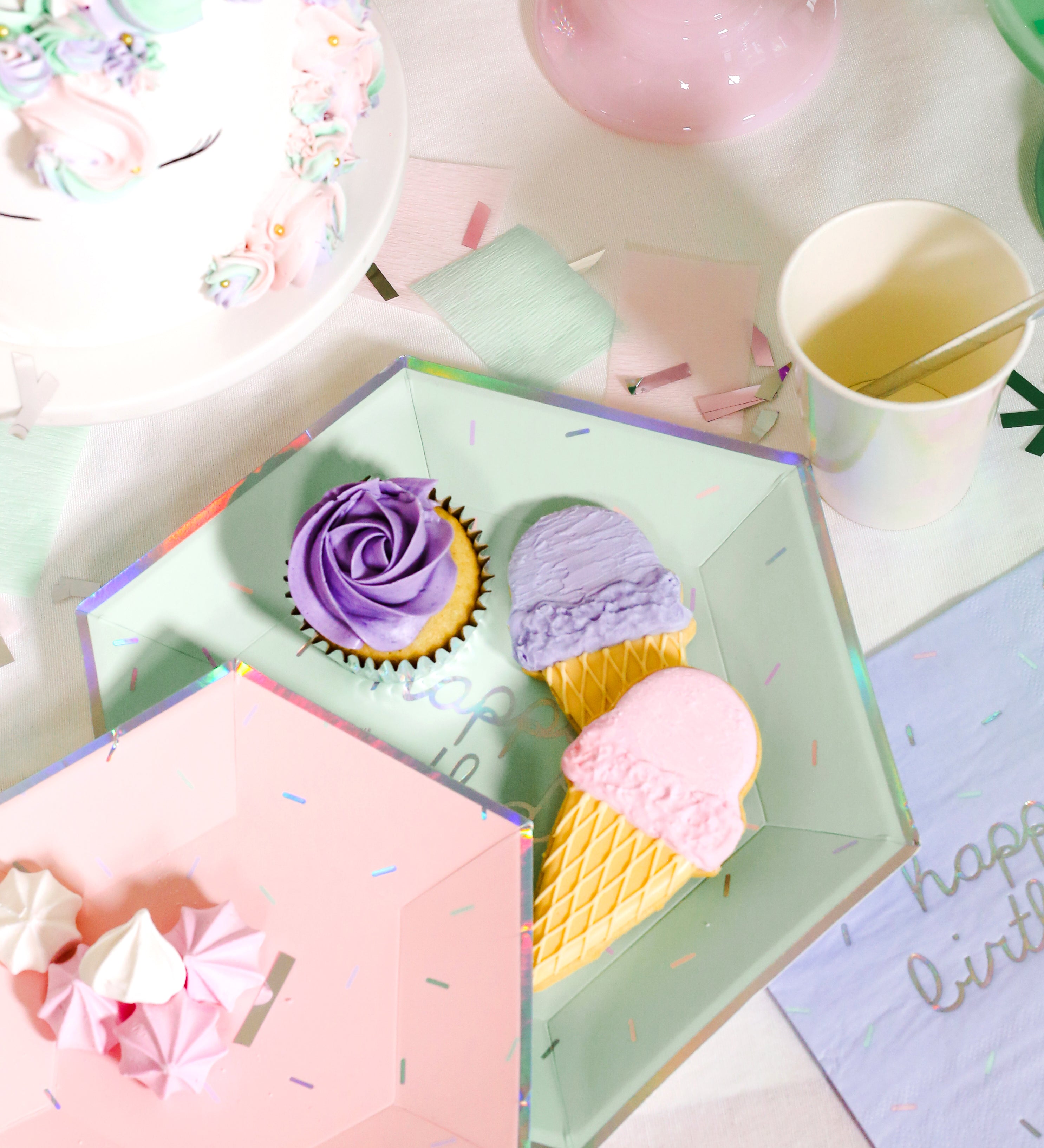 Make your unicorn birthday party dream come true! Designed with shiny iridescent holographic foil details, our pretty pastel tableware kit will have every kid and adult feeling sprinkled with love!