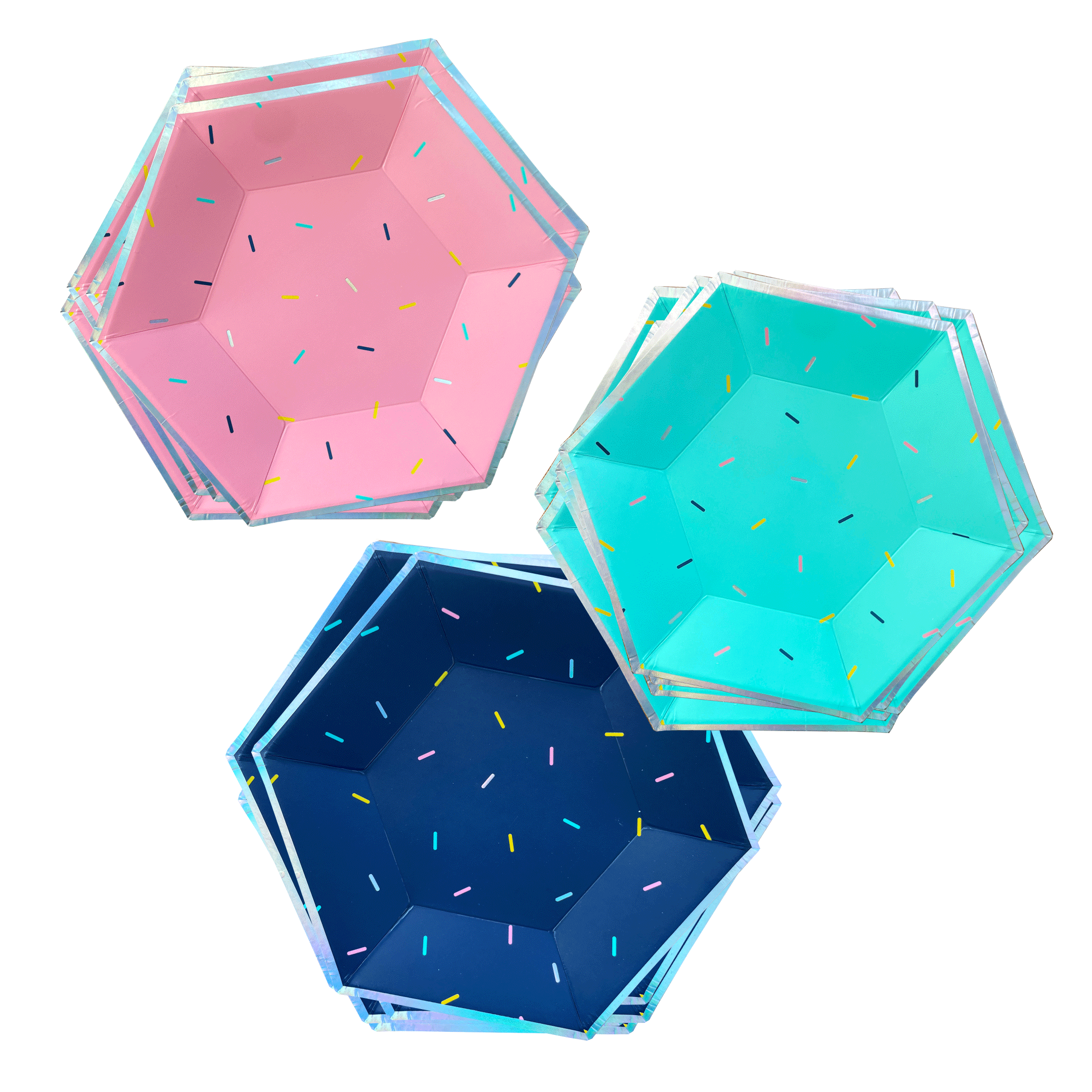 Celebrate your next birthday or social event with our Pastel ombre large paper plates! Shimmered with silver splatters and fun colors, wow your guests with an 80's themed party or aura-reading party at the park!