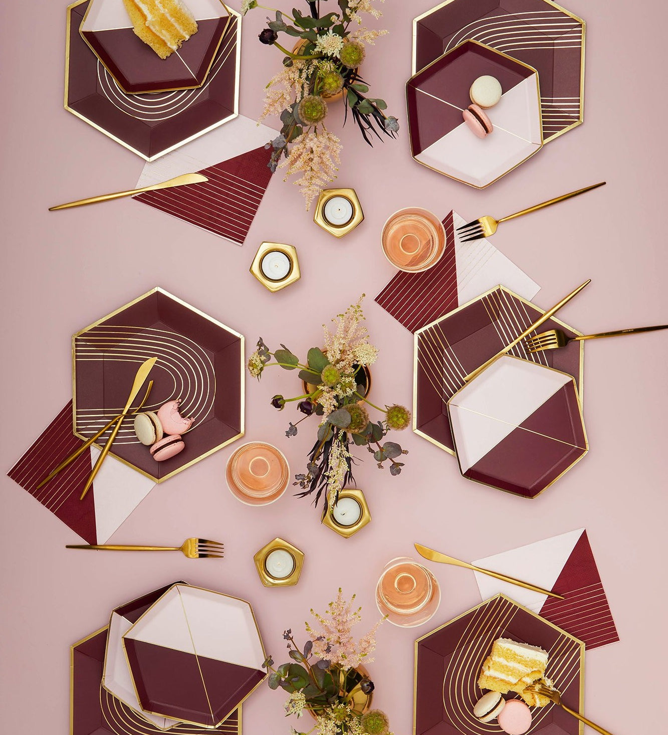 Our Bordeaux collection of party tableware effortlessly adds a touch of chic elegance to any event.