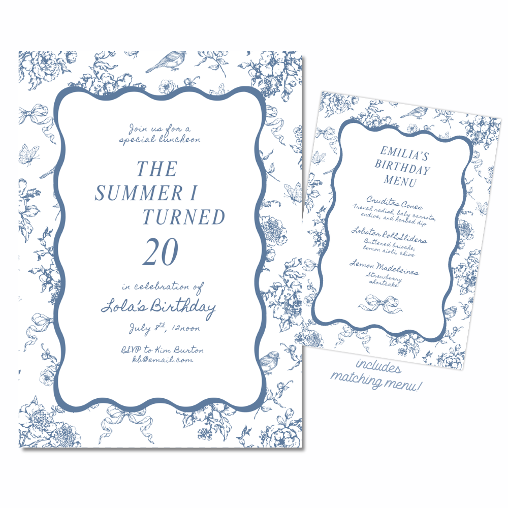 Featuring delicate toile illustrations and classic cabana stripes in dusty blue, each piece is finished with elegant gold foil for a refined touch. Whether you’re hosting a summer garden party, bridal shower, birthday dinner, or cozy autumn celebration, Hamptons Toile was created to make entertaining feel effortless.