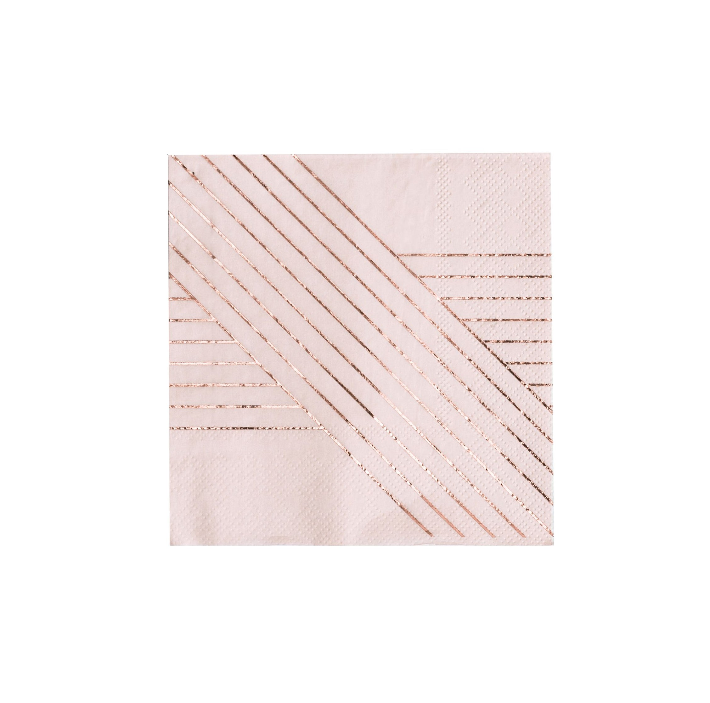 Elegant pale pink cocktail napkins inset with elegant gold stripes add a dash of style to your tabletop, dessert station, or bar cart.