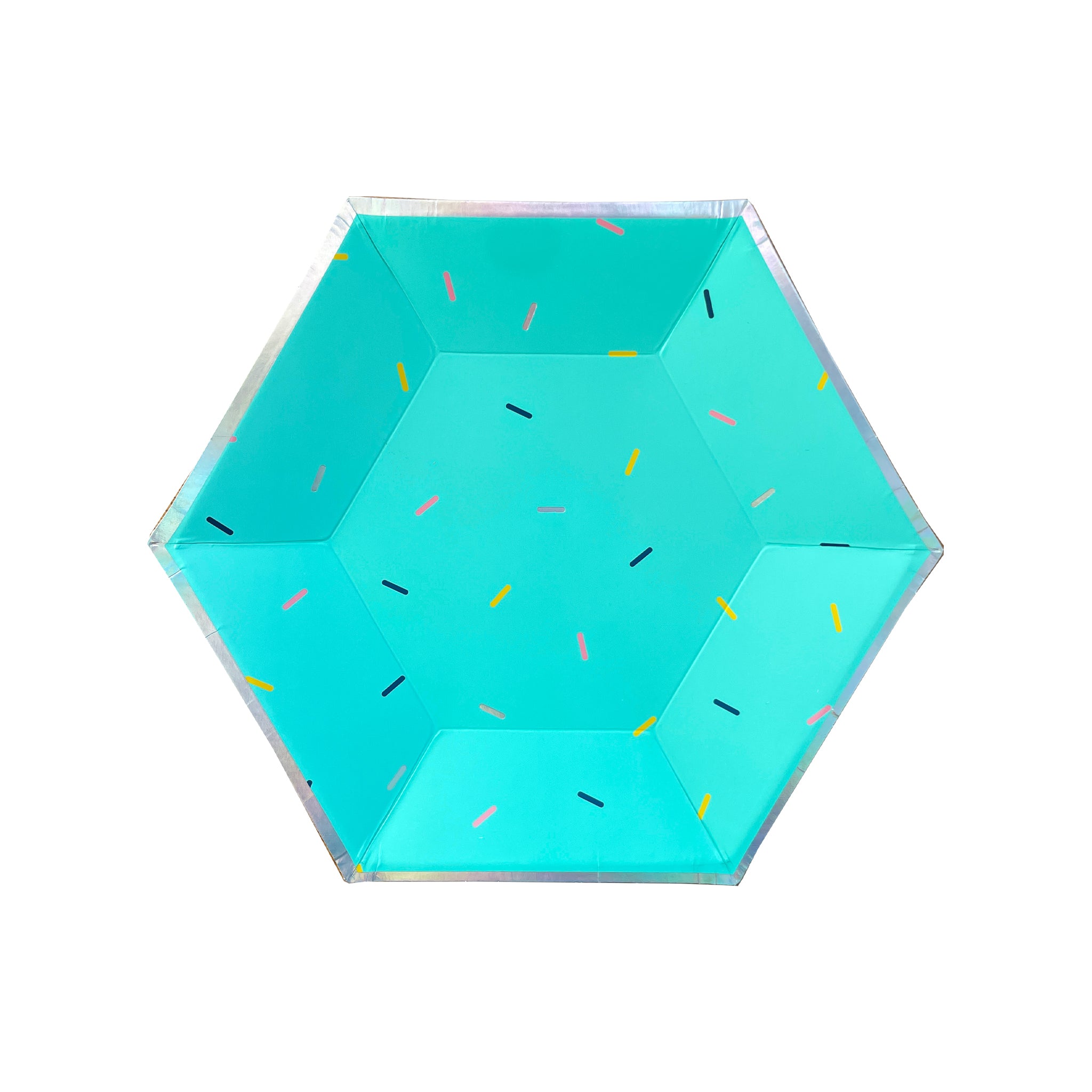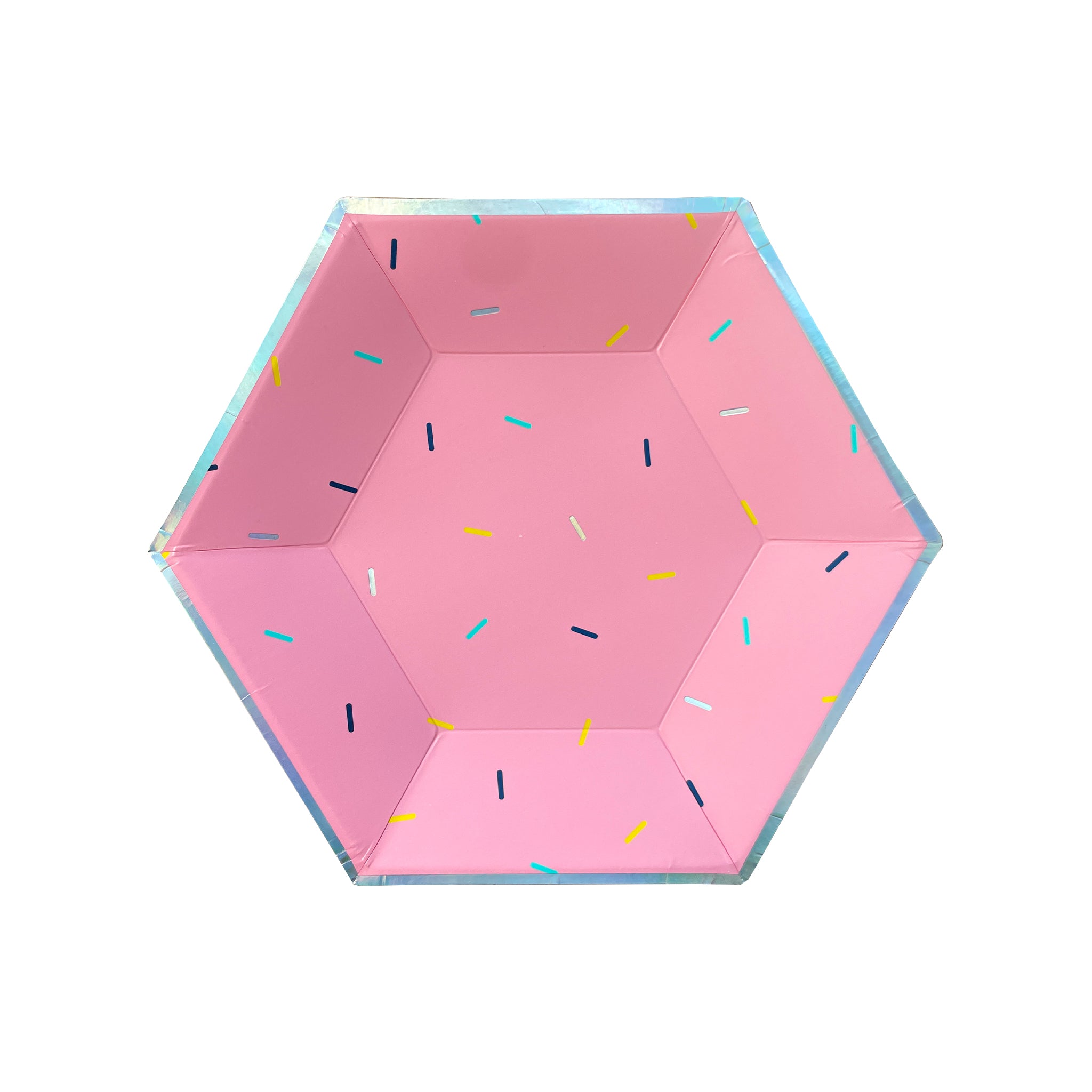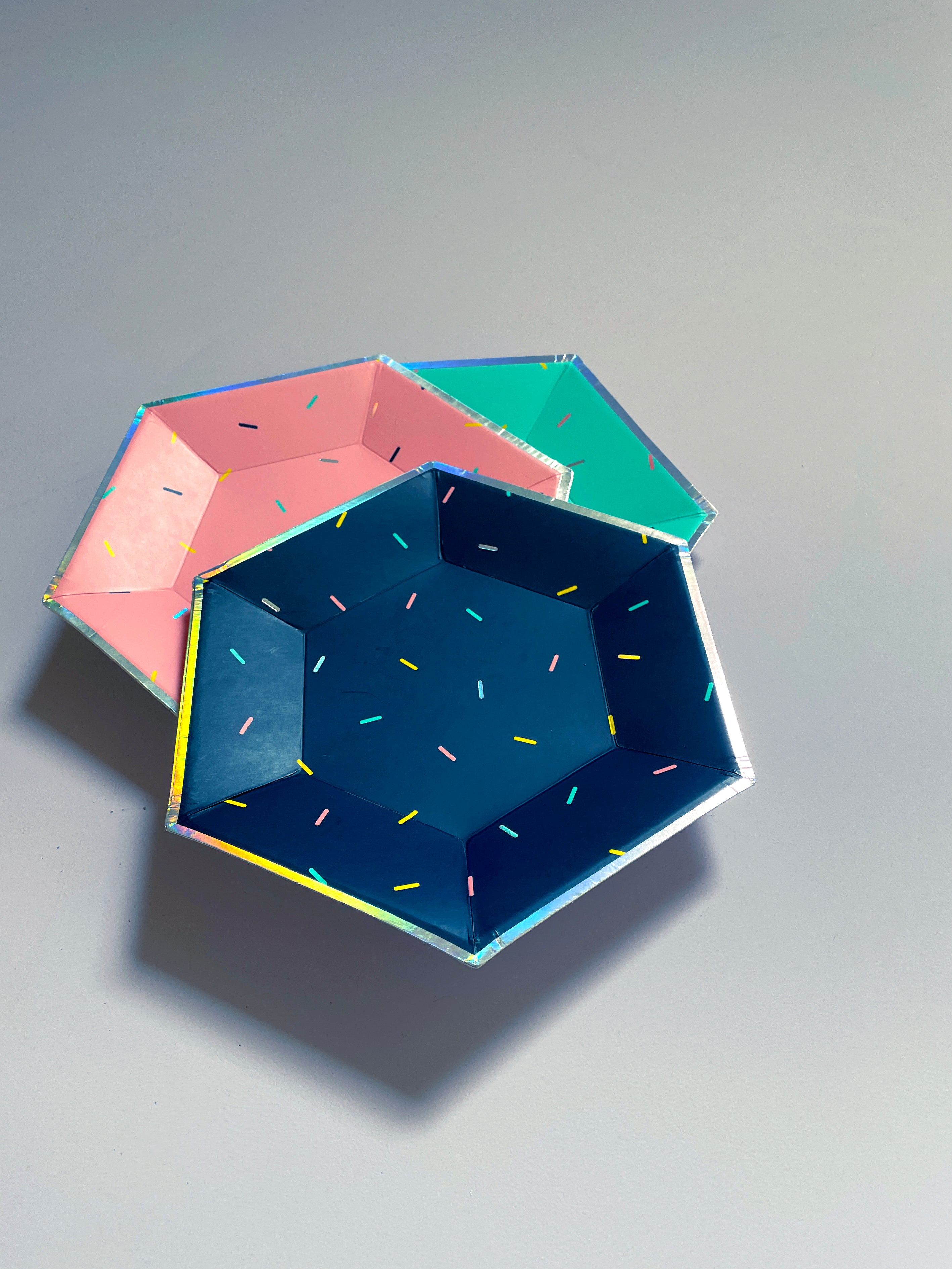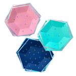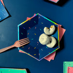 Shimmering in fun holographic rim, our bright small hexagon paper plates set a joyful tone for your next birthday celebration whether it be unicorn, ice cream, donut, or cupcake themed!