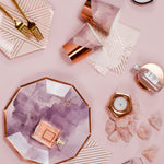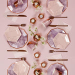 Soft and romantic, our pale pink hexagon paper plates adorned with delicate rose gold lines are perfectly made for showers, birthdays and special affairs.
