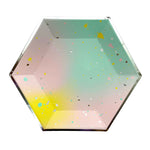 Celebrate your next birthday or social event with our Pastel ombre large paper plates! Shimmered with silver splatters and fun colors, wow your guests with an 80's themed party or aura-reading party at the park!