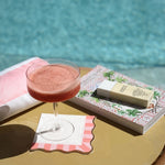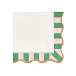 Bring a splash of Palm Beach charm to your next gathering with our Cabana Stripe Cocktail Napkins. Featuring two vibrant colorways - bright pink & tropical green - each napkin is framed with classic cabana stripes, scalloped edges, and luxe gold foil trim for that perfect touch of glam. Comes with 10 of each color for effortless mix-and-match fun.