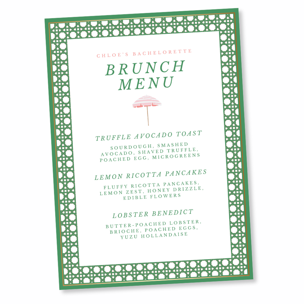 Palm Beach - Digital Menu for Bachelorette, Bridal Shower, or Dinner Party