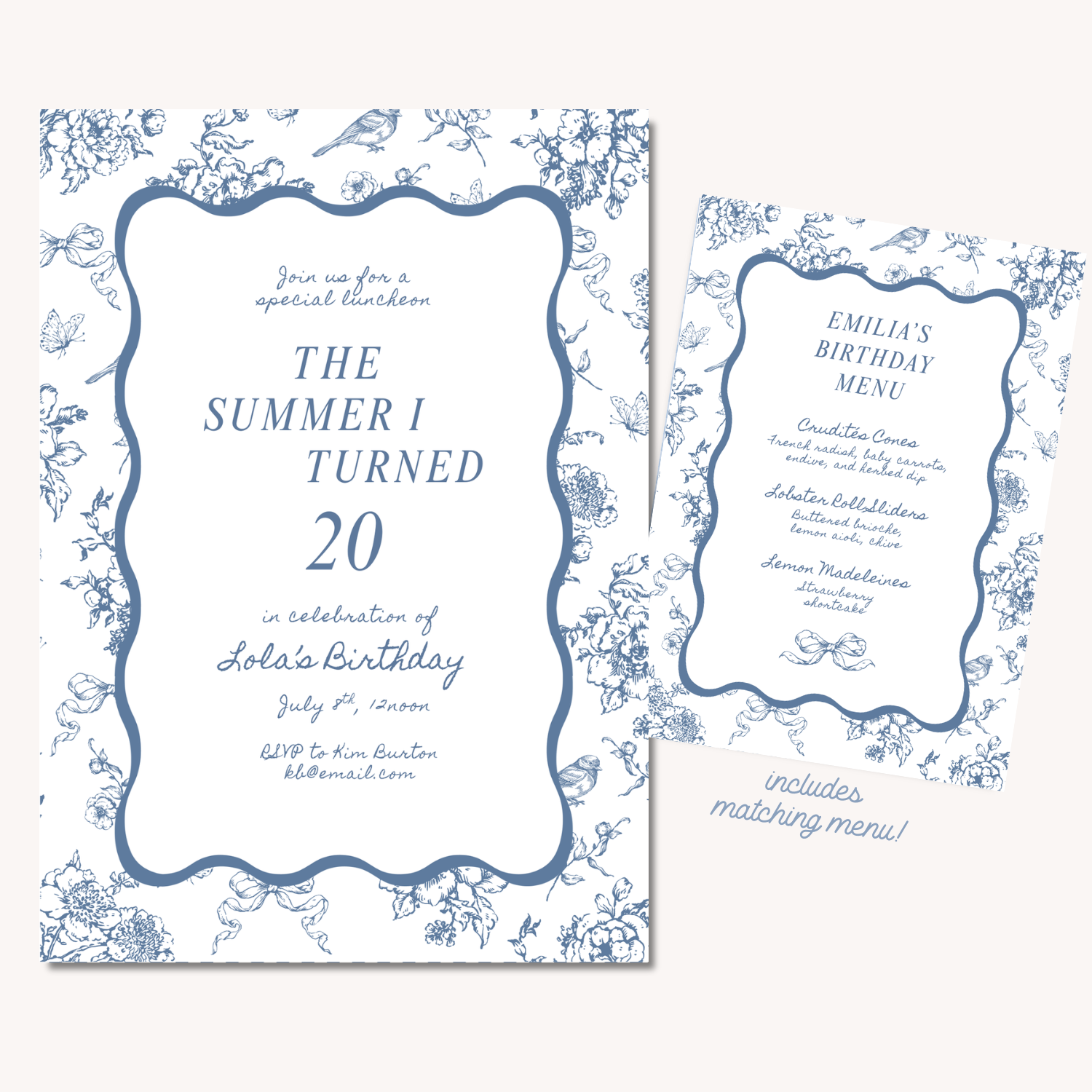 Featuring delicate toile illustrations and classic cabana stripes in dusty blue, each piece is finished with elegant gold foil for a refined touch. Whether you’re hosting a summer garden party, bridal shower, birthday dinner, or cozy autumn celebration, Hamptons Toile was created to make entertaining feel effortless.