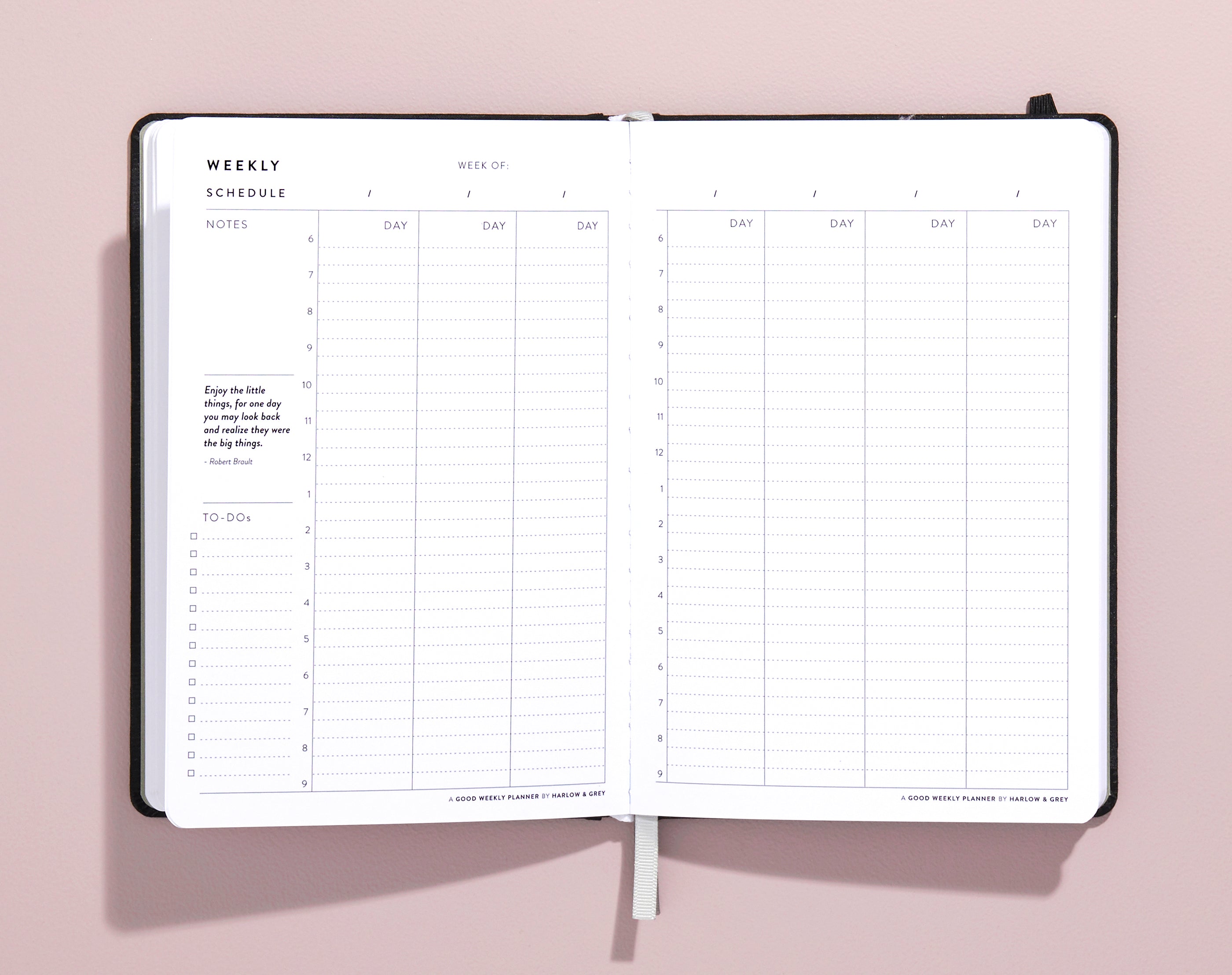 We believe that any week that is meaningful is a good one. We created "The Good Weekly Planner" to help you organize and manage your weeks and pause every month to reflect. The more you engage in these journaling practices, the more you will recognize patterns and better understand your thoughts and behavior. You will move forward with intention and a stronger sense of purpose.