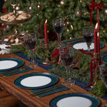Our Tartan Christmas Dinner Plate features a deep navy and emerald plaid rim with gold foil detailing and delicate lace-inspired trim. Perfect for layering with our matching small plates and dinner napkins, it’s the foundation for a timeless holiday table that never goes out of style.